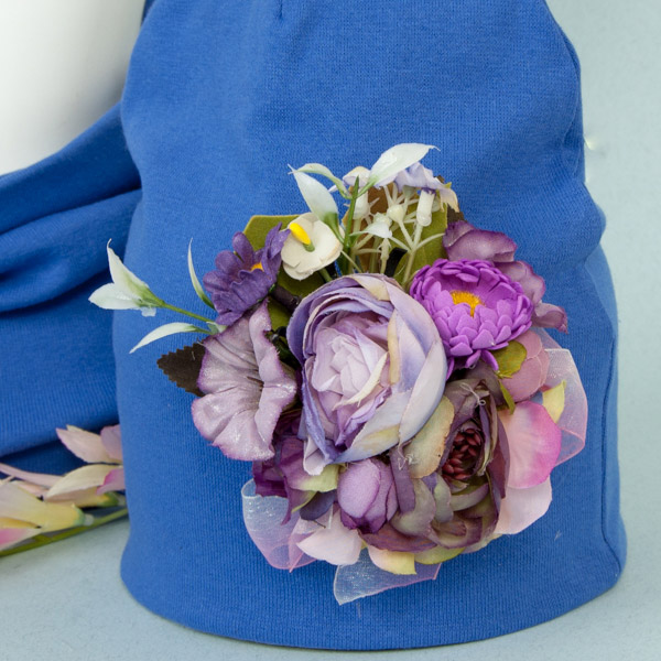 Шапочку украшает необыкновенно красивый букет, который с легкостью можно снять для стирки изделия.
