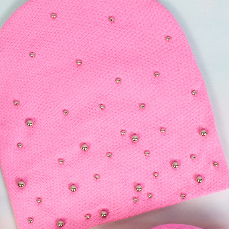 Украшена металлическими бусинками, которые надежно закреплены с помощью клепок.