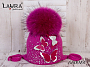 Шикарная, зимняя шапочка с огромным, натуральным помпоном от фирмы LAURA.