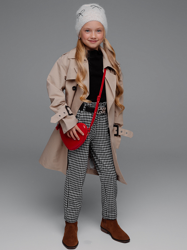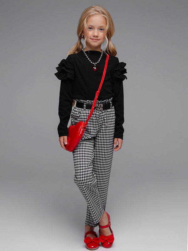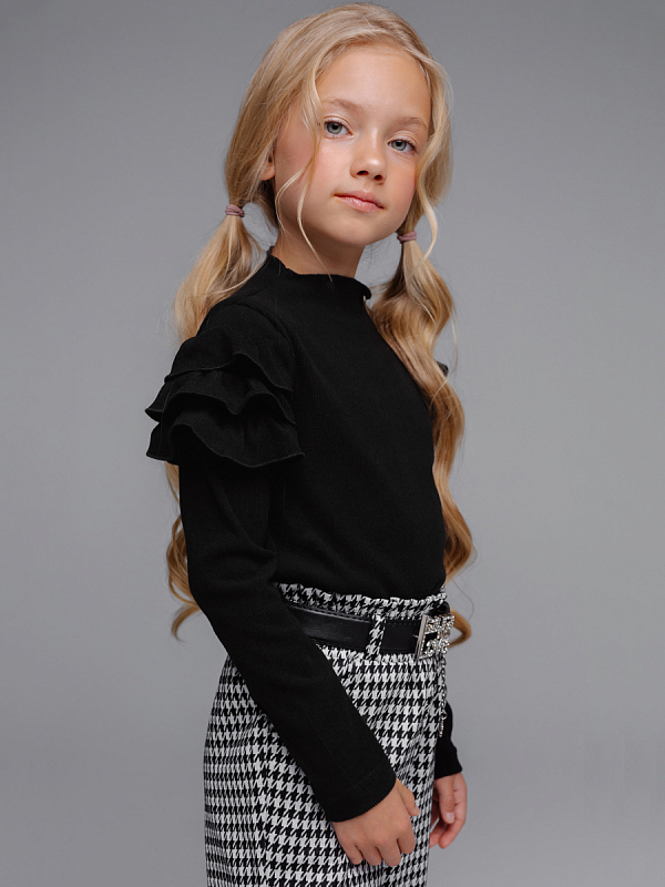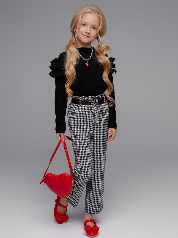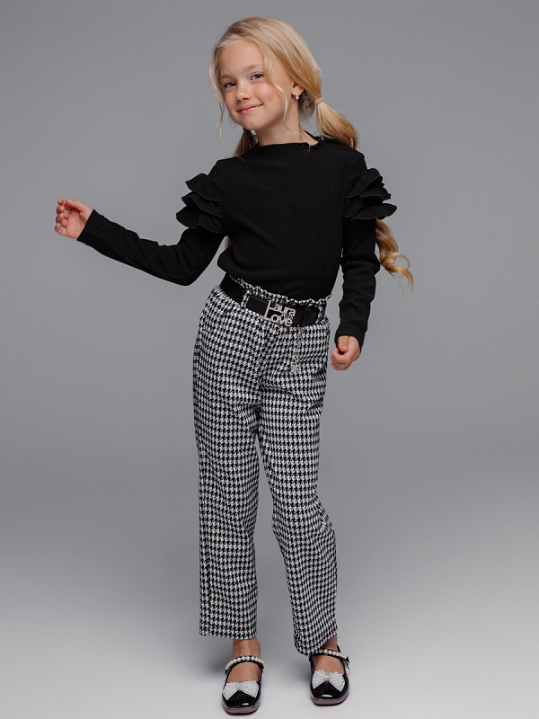 Костюм для девочки водолазка и брюки черно-белого цвета.