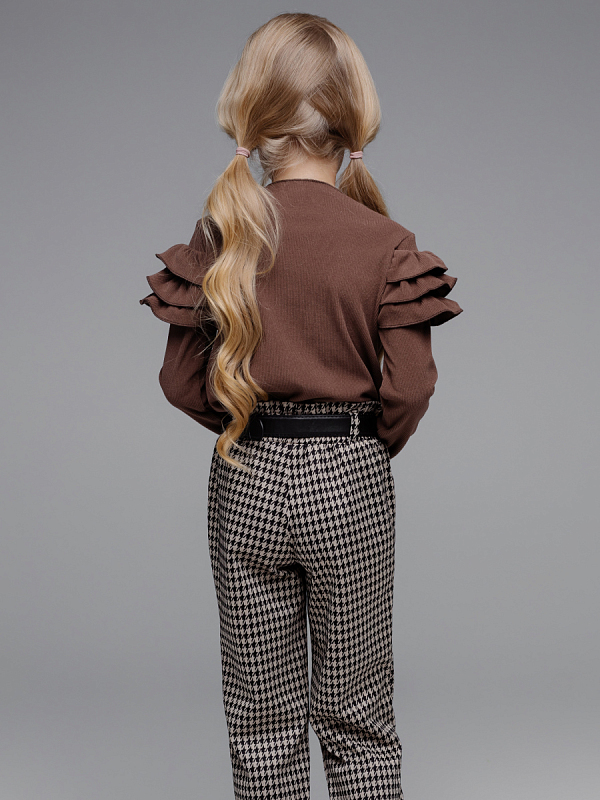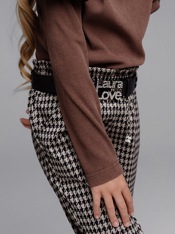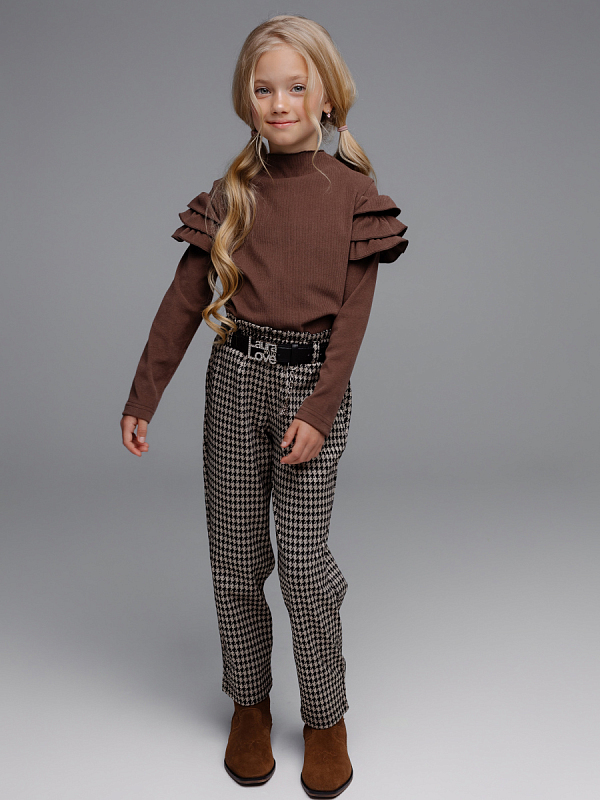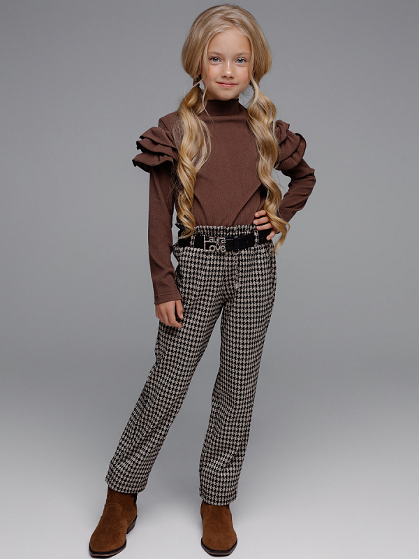 Костюм для девочки водолазка и брюки коричневого цвета.