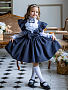 К сарафану можно заказать белый подъюбник из фатина для пышности (артикул 2700092) или темно-синий подъюбник на каждый день, который не виден снизу (артикул 2100032). С ним сарафан будет смотреться нарядней. На фото сарафан с подъюбником.