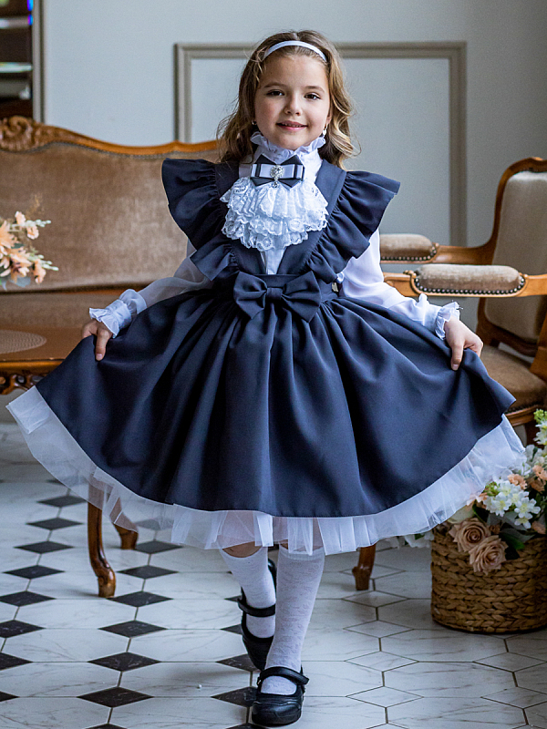 Также не забудьте про нарядные банты, гольфы, колготы и жабо ручной работы.